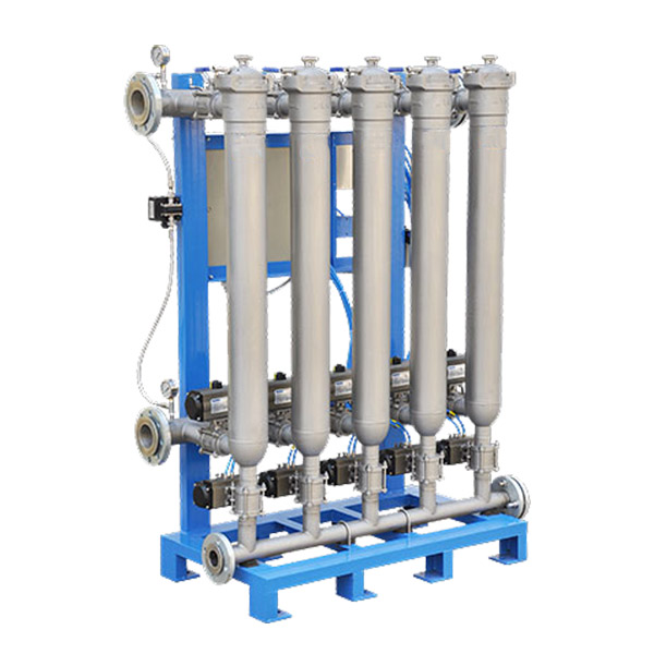 列管式反沖洗過濾器由罐體、濾芯組件、設(shè)備就近連接管線、自動(dòng)閥門、控制柜等組成。在過濾器殼體的內(nèi)部設(shè)置有多根濾管,污液從濾管外面流向?yàn)V管內(nèi)部,最后從過濾器的集液腔流出??刂?..