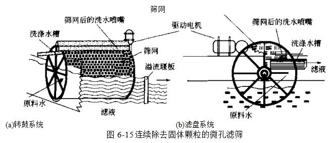 微孔篩分最普遍的應用是在飲用水和廢水處理工業(yè)中,孔徑為15?200μm的編織金屬網或纖維織物安裝在旋轉轉筒的外側,轉筒的一般直徑為1?3.3m,長度為0.6?5Im.