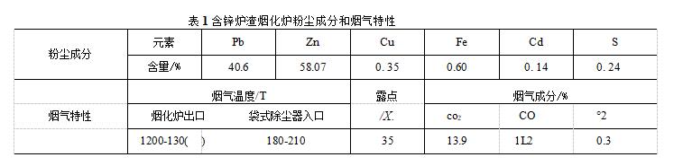 煙化爐粉塵成分和煙氣特性列于表煙氣先經(jīng)過余熱鍋爐以回收熱量并降低溫度然后進(jìn)入長(zhǎng)袋低壓脈沖袋式除塵器收塵.