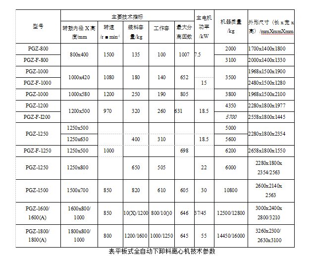 平板式全自動(dòng)下卸料離心機(jī)技術(shù)參數(shù)見表:
